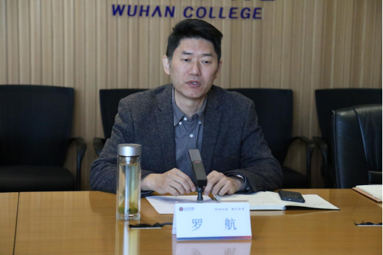副校长罗航首先代表学校向出席仪式的多邻国与新东方教育嘉宾表示热烈欢迎并致辞。随后,他介绍了武汉学院的基本情况,重点阐述了学校的公益性办学特色与国际化发展成果。他进一步表示,期待通过此次合作,能够结合多邻国英语测试的技术优势与新东方的教育资源,共同推动我校学生英语语言能力水平的提升和教师英语教学创新,为我校国际化人才培养提供有力支撑。